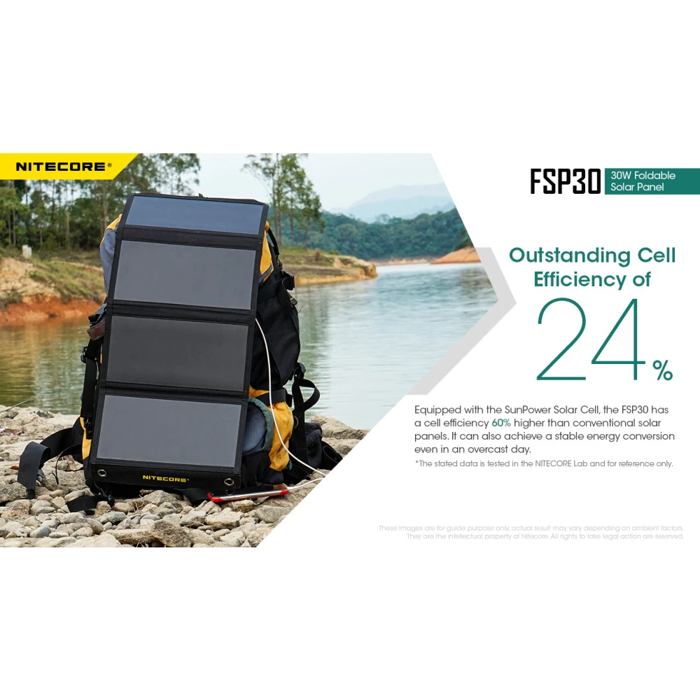The Nitecore FSP30 is a 30W Folding Solar Panel which is equipped with dual USB-A + 1x USB-C output ports. 18W PD charging speed is available with the USB-C port. With sufficient sunlight, the total output power can reach 30W, enabling multiple simultaneous and high-speed output for various devices including smartphones, tablets, and headlamps.