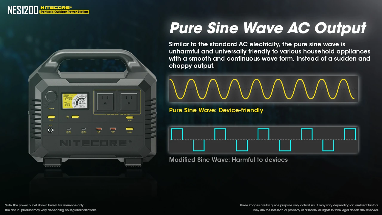 220V: 220V~6A 50Hz, Pure Sine Wave, 1200W, 2200W surge
