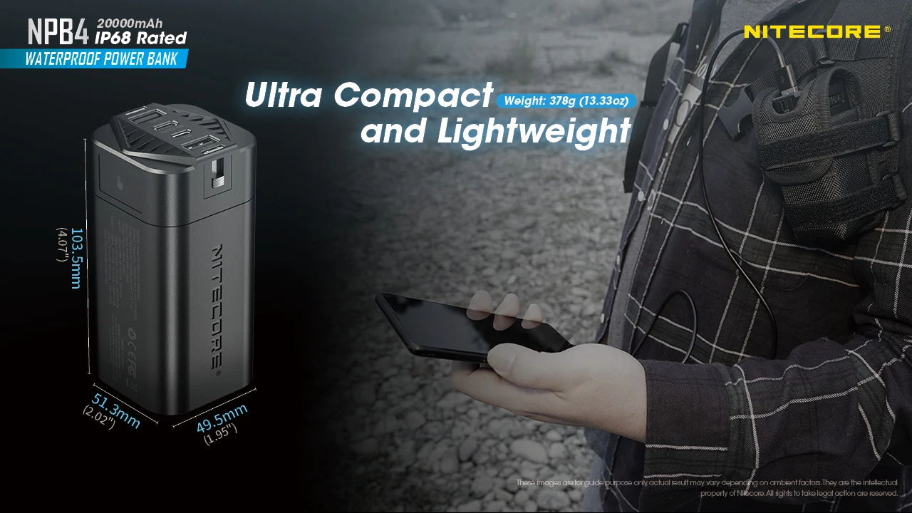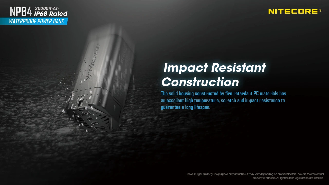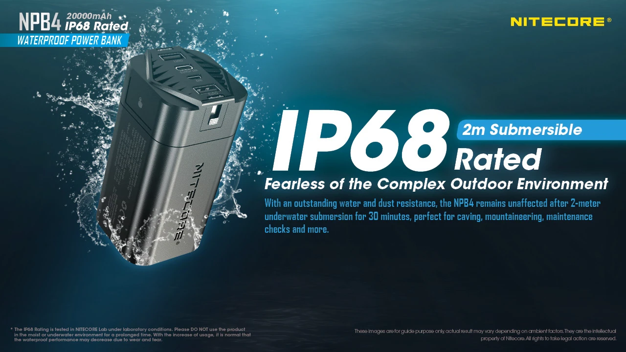 With an outstanding water and dust resistance, the NITECORE NPB4 is the latest model of the world’s first IP68 rated waterproof power bank series and remains unaffected after 2-metre underwater submersion for 30 minutes.
