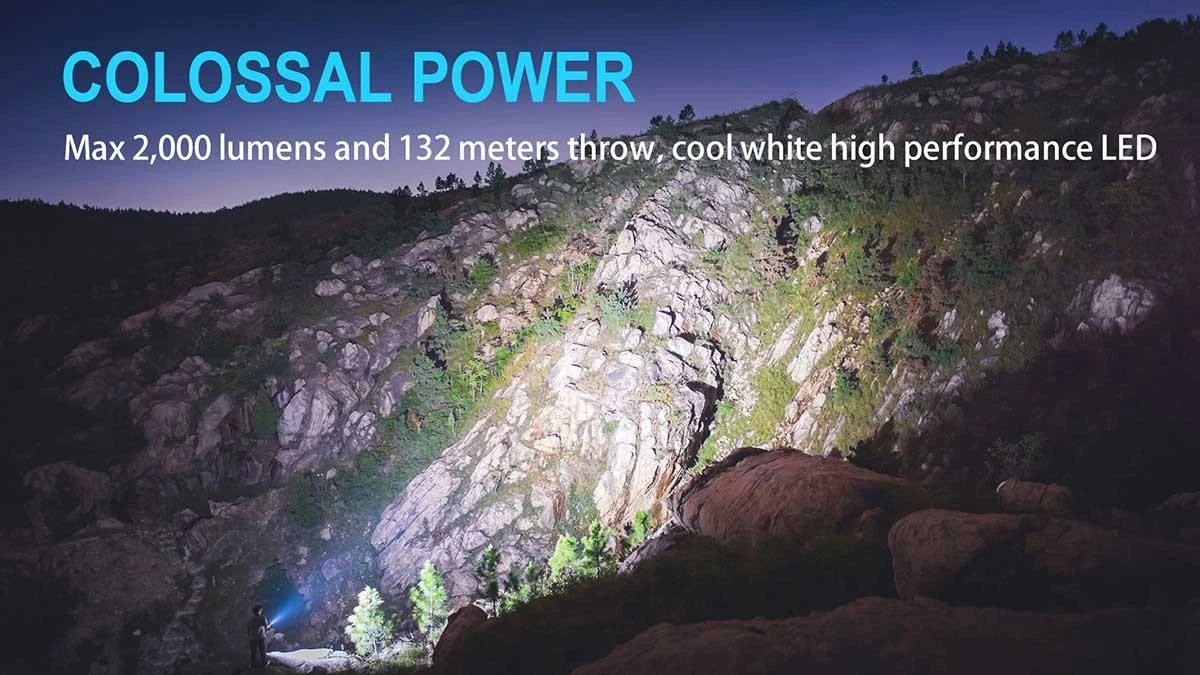 - Level 1: 2000 lumens / 1 minute (then gradually steps down to 600 lumens for 160 minutes)