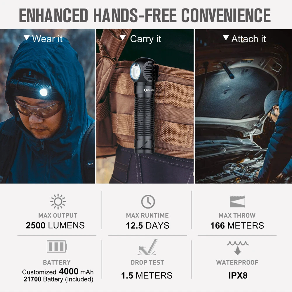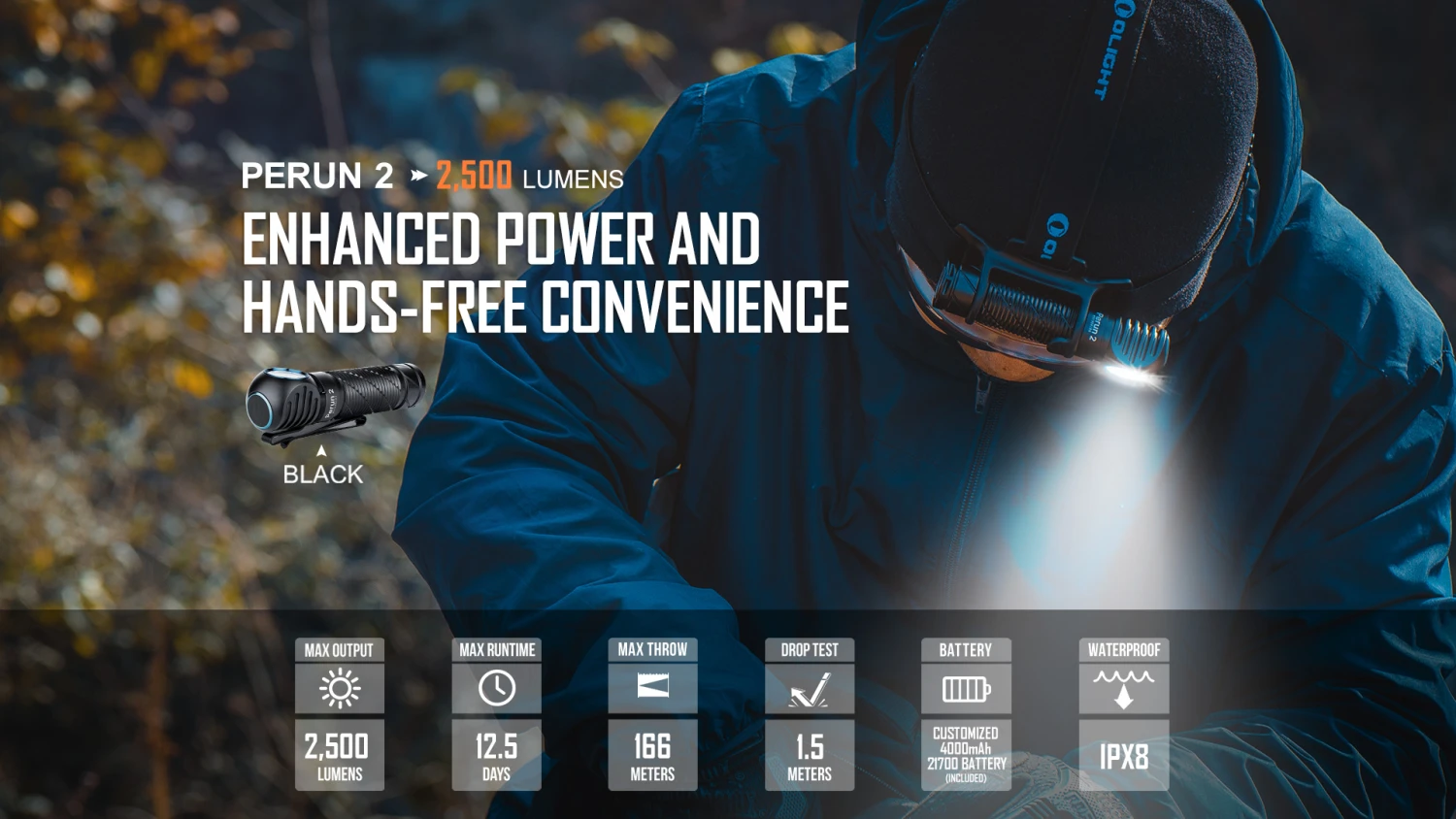 Olight Perun 2 Rechargeable Flashlight/Headlamp (2500 Lumens, 166 Metres)