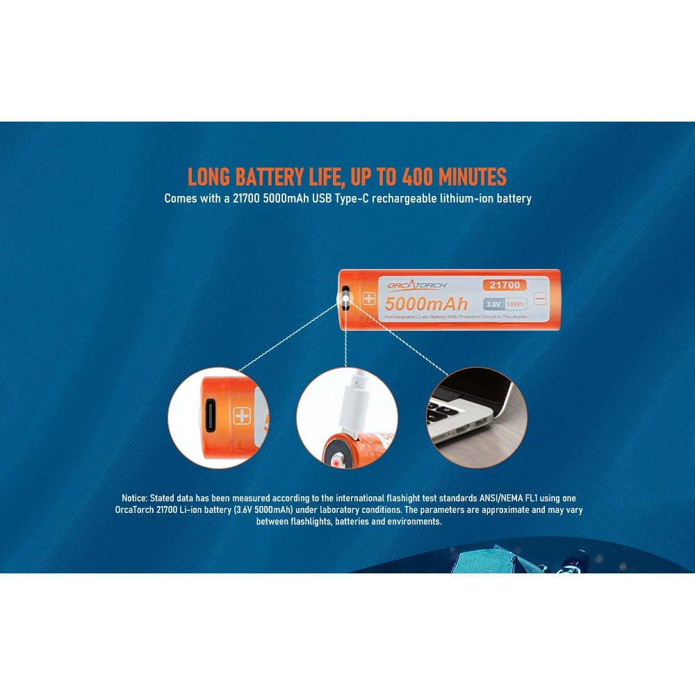 - Use 1 x 21700 Li-ion rechargeable battery (included)