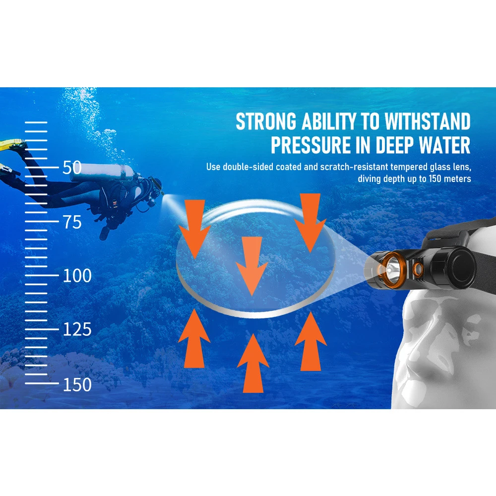 - Two sides coated toughened glass with high water pressure resistance under deep water, depth rated to 150 metres