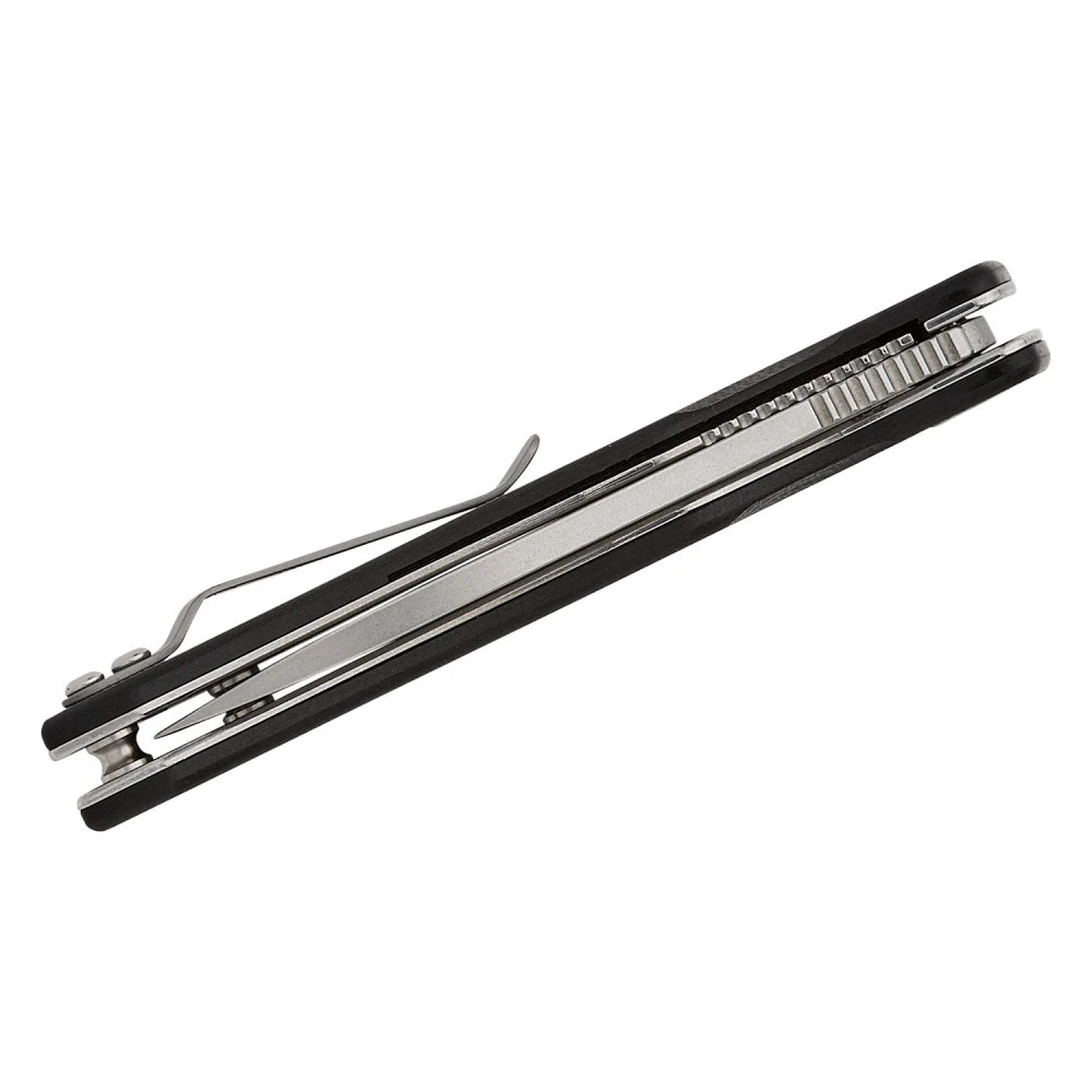 The QSP Otter QS140-C1, has a 2.70” 14C28N stainless steel modified sheepsfoot blade with a stonewashed finish. The near-straight blade is razor-sharp and features a slight upsweep near the extremely sharp tip, which makes it an excellent slicing and piercing tool. The flipper tab and ceramic ball bearings in the pivot make deployment smooth and fast. This model features grippy black G10 handles.