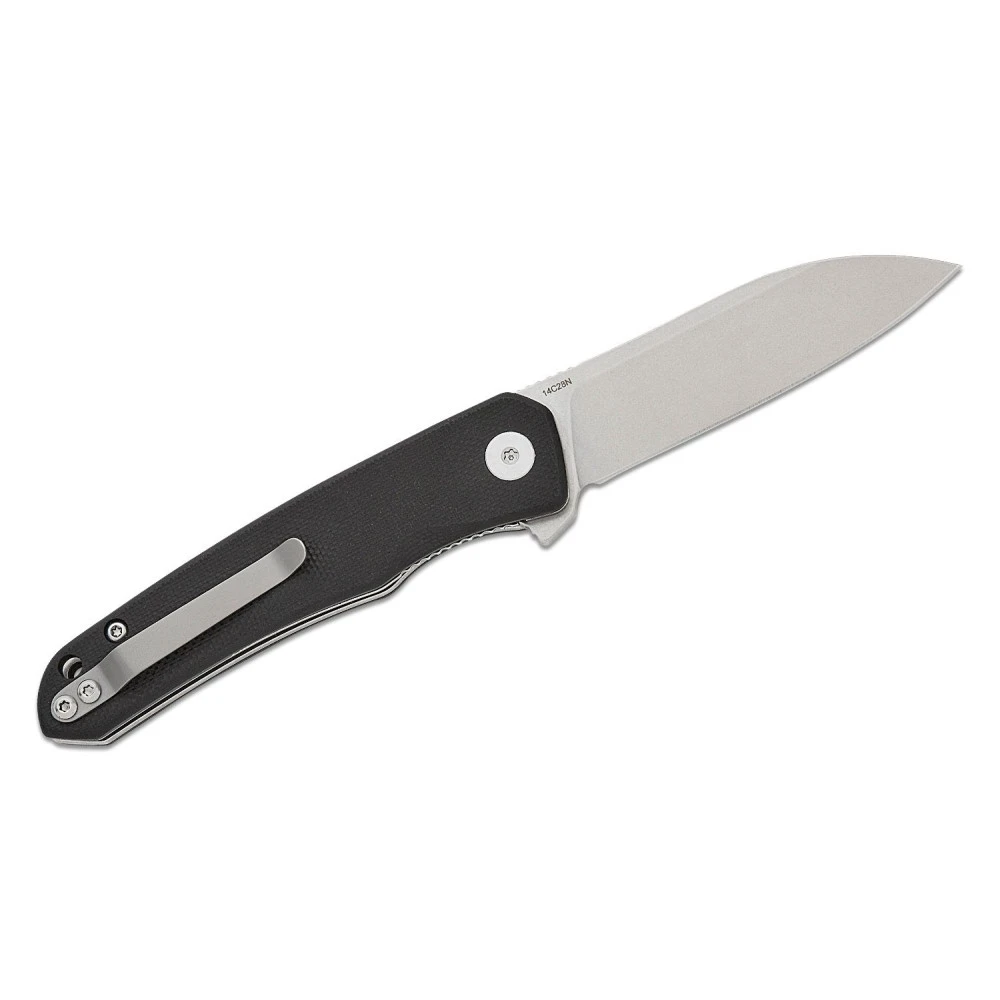 QSP Otter – Stonewashed 14C28N Modified Sheepsfoot Blade, Black G10 Handles, QS140-C1