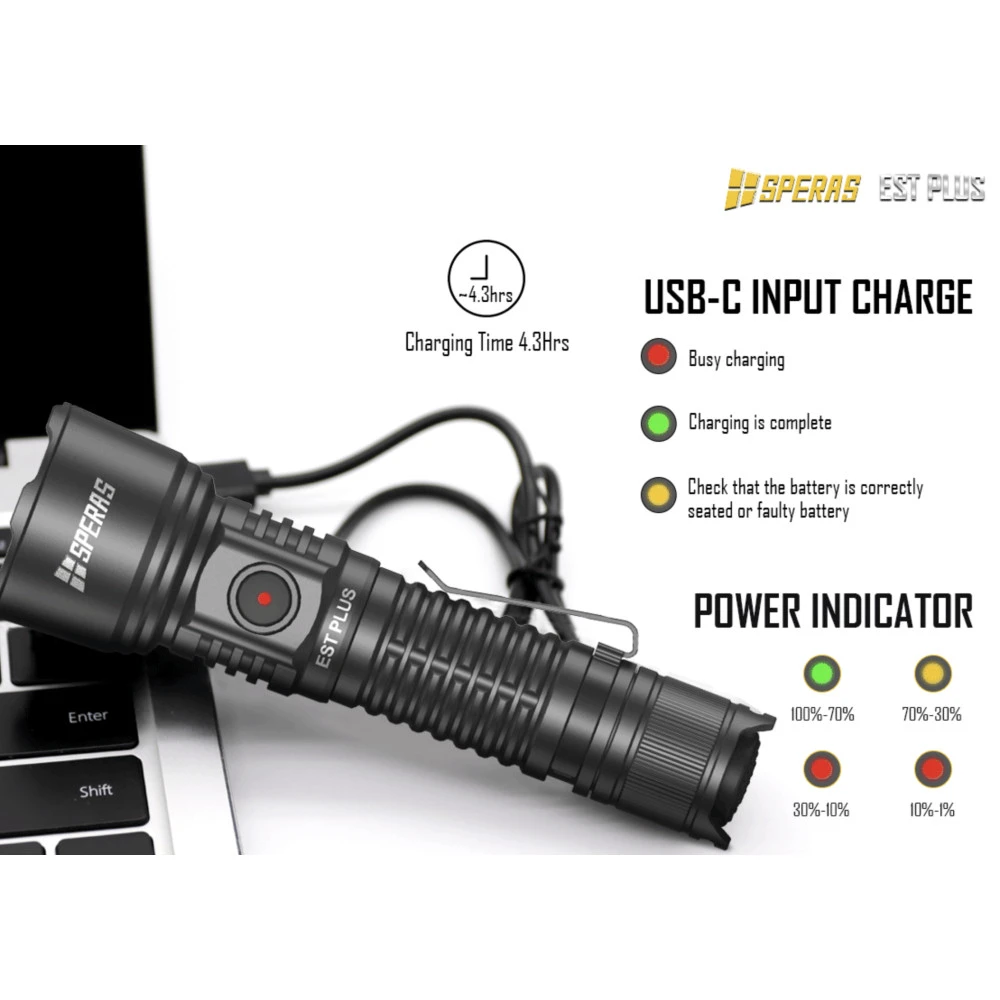 - Type-C charging function: the flashlight can be fast charged within 4 hours.