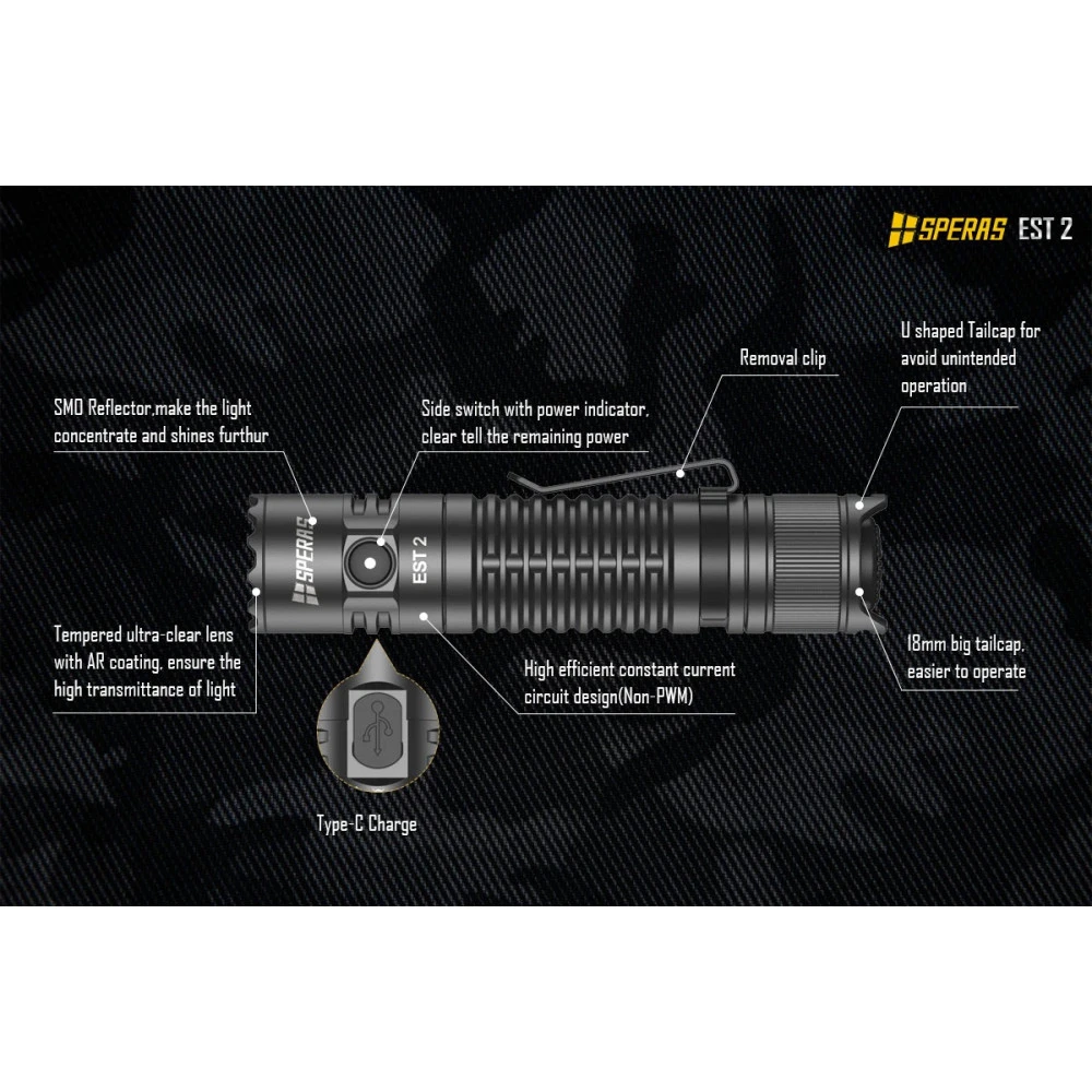 1x EST2 flashlight (with 1x 18650 3100mah battery)