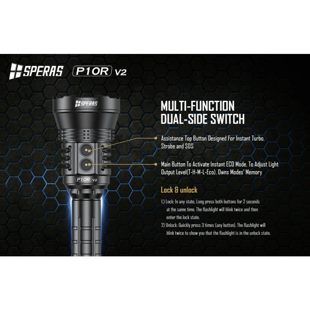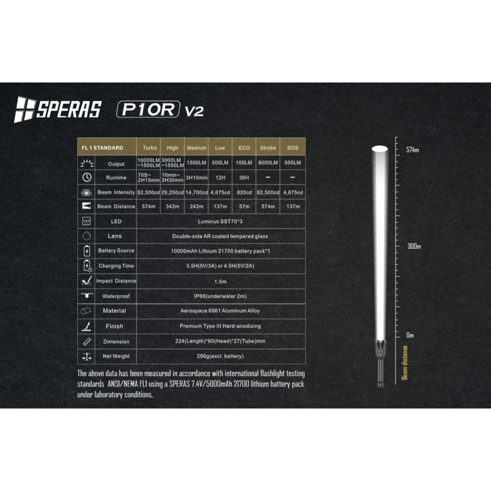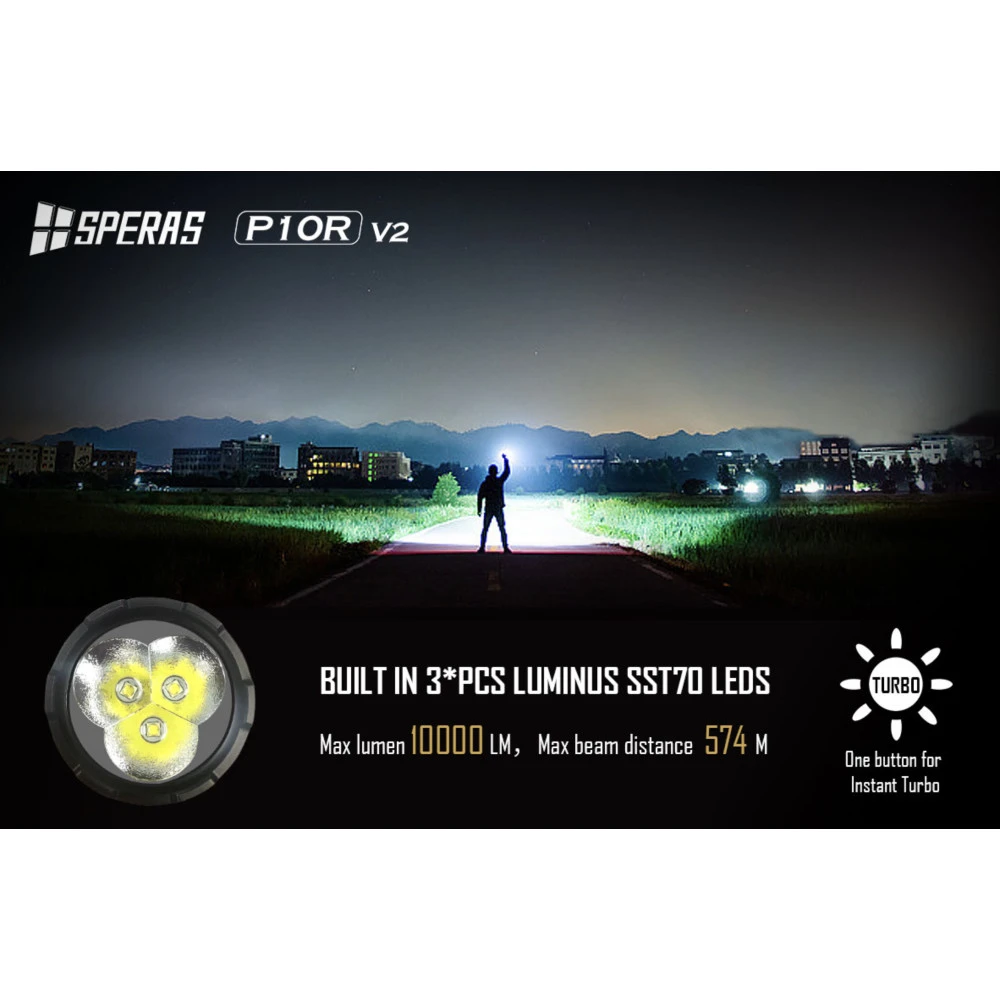 - Max 10,000LM 574m beam throw and Max running 36hours