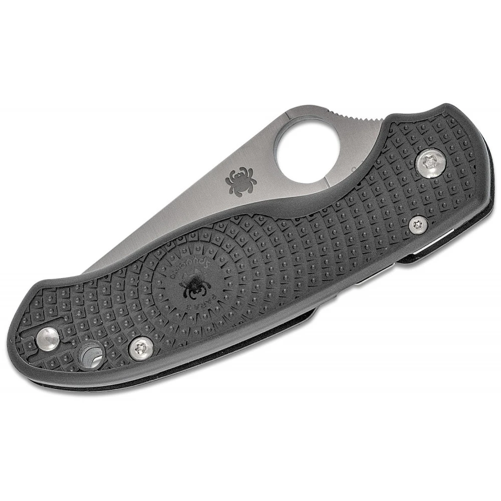 Spyderco’s best-selling Para 3 folding knife distilled all the key qualities of their time-tested Para Military™ 2 model into an ultra-compact, carry-friendly format. Now this groundbreaking design takes another quantum leap forward by incorporating injection-moulded fibreglass-reinforced-nylon (FRN) scales and a streamlined version of Spyderco’s patented Compression Lock® mechanism to create the Para 3 Lightweight. Almost 30 percent lighter than its G-10-handled counterparts, the Para 3 Lightweight boasts linerless, open-backed construction and Spyderco’s high-traction Bi-Directional Texture™ pattern for a secure grip. A stainless steel lock bar inset into the handle’s interior forms the foundation of its sturdy lock mechanism, while keeping the overall weight to an absolute minimum. The knife’s full-flat-ground blade is crafted from CTS® BD1N, a nitrogen-enriched high-carbon chromium steel that offers a superior balance of hardness, edge retention, and corrosion resistance.