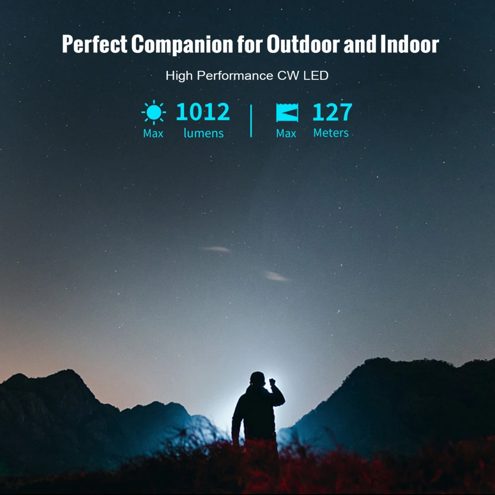 - High LED Performance: Delivers up to 1012 lumens (for Max 120 secs) and a beam distance of 127 metres. Automatically steps down to 262 lumens for extended runtime.