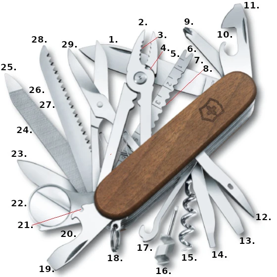 If you love the usefulness of a SwissChamp and feeling of hard wood scale, Victorinox SwissChamp Swiss Army Knife – Walnut Wood is the multi-tool you’ll want to have. It has 29 functions, including sewing eye and fish scaler and magnifying glass. It is truly a champion’s best tool. The Walnut Wood scale adds a level of elegance to the classic SwissChamp that any enthusiast will love.