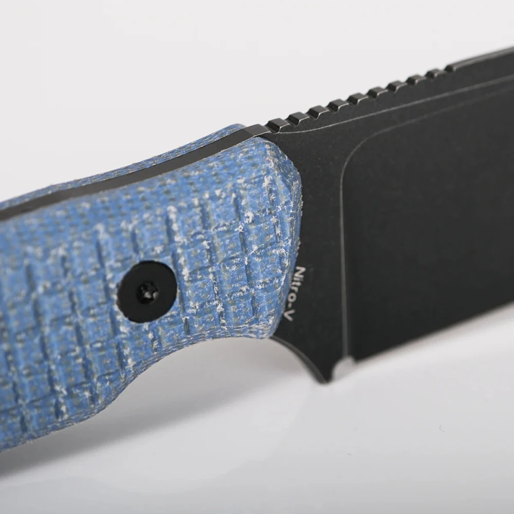 Vosteed Mink D0104 – 3.99″ Nitro-V Black Stonewashed Fixed Sheepsfoot Blade, Blue Micarta Handle