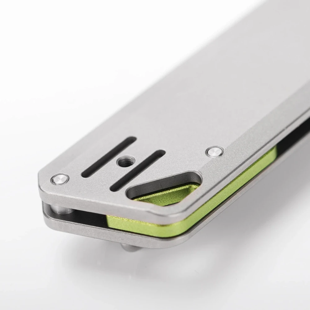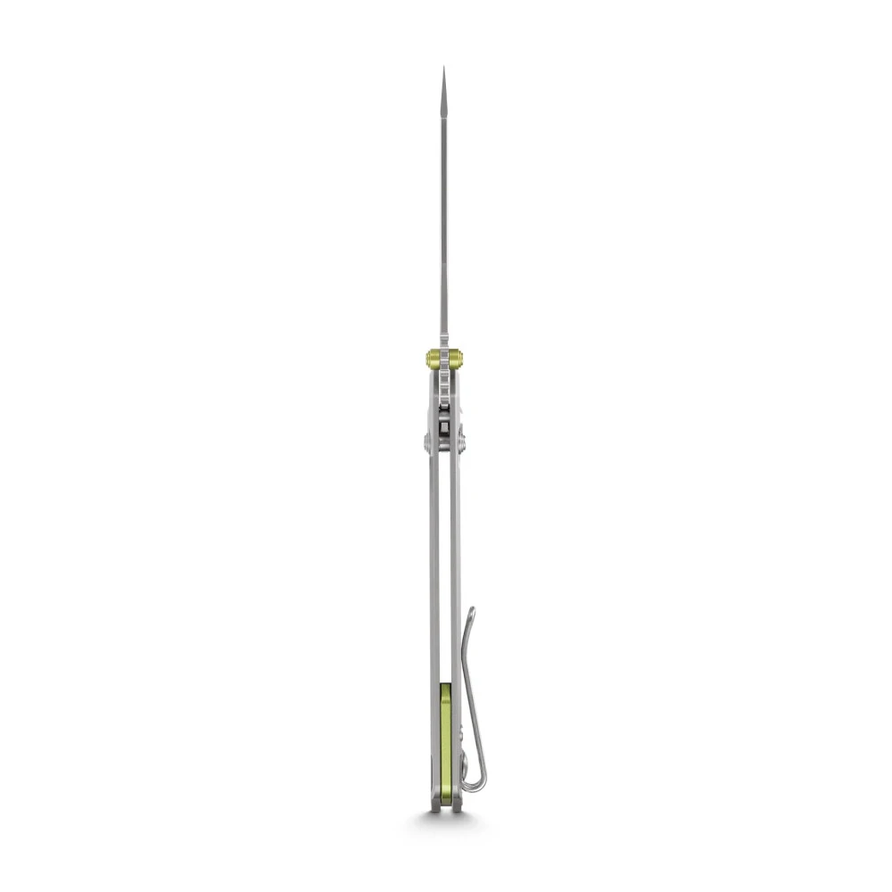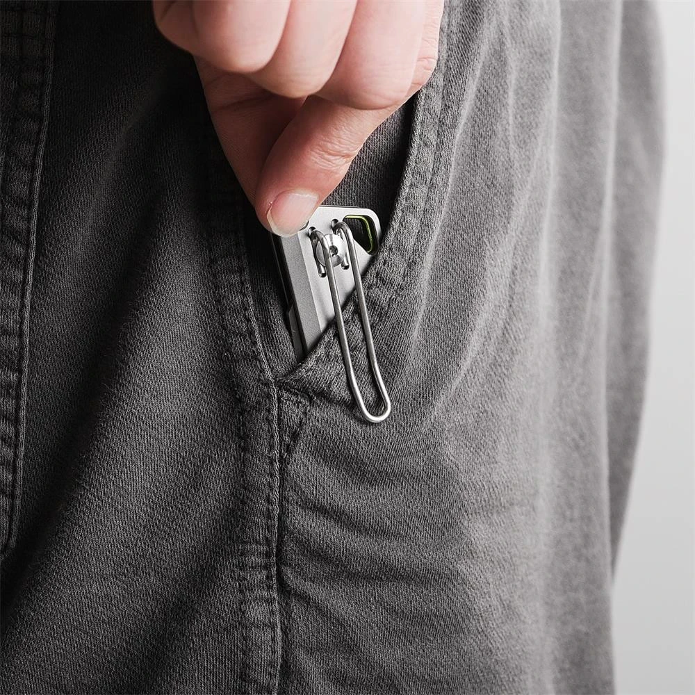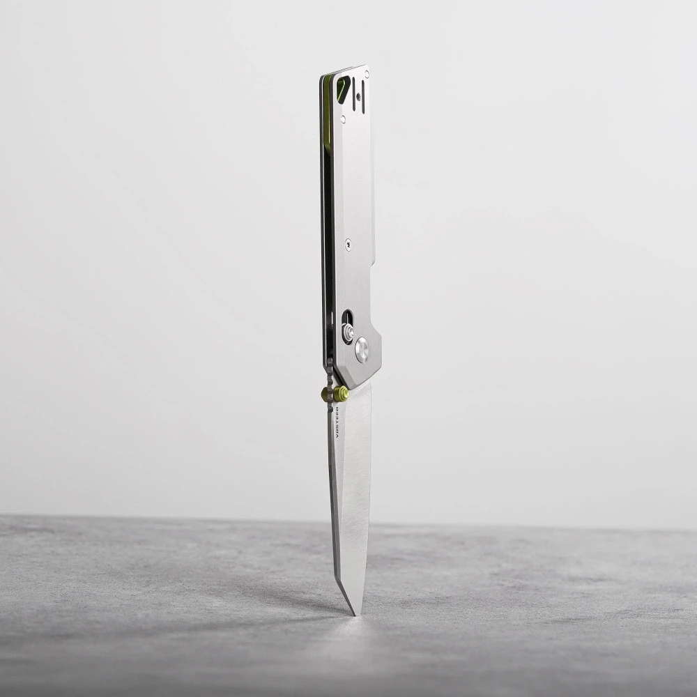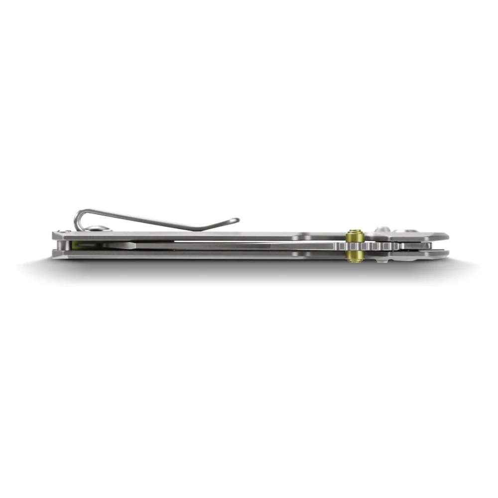As Brian Greene said, “The skyscraper is but a physical realization of the information contained in the architect’s design.” A well-designed knife is the summation of ideas and information. To make the knife truly ambidextrous, we incorporated the time-honored cross-bar lock system and paired it with dual thumbstuds. To create a sleek and uptempo design, we removed unnecessary lines and curves, opting for a minimalistic wire clip. To ensure versatility and practicality, we chose a reversed tanto blade shape and added a clean, triangle-shaped lanyard hole.