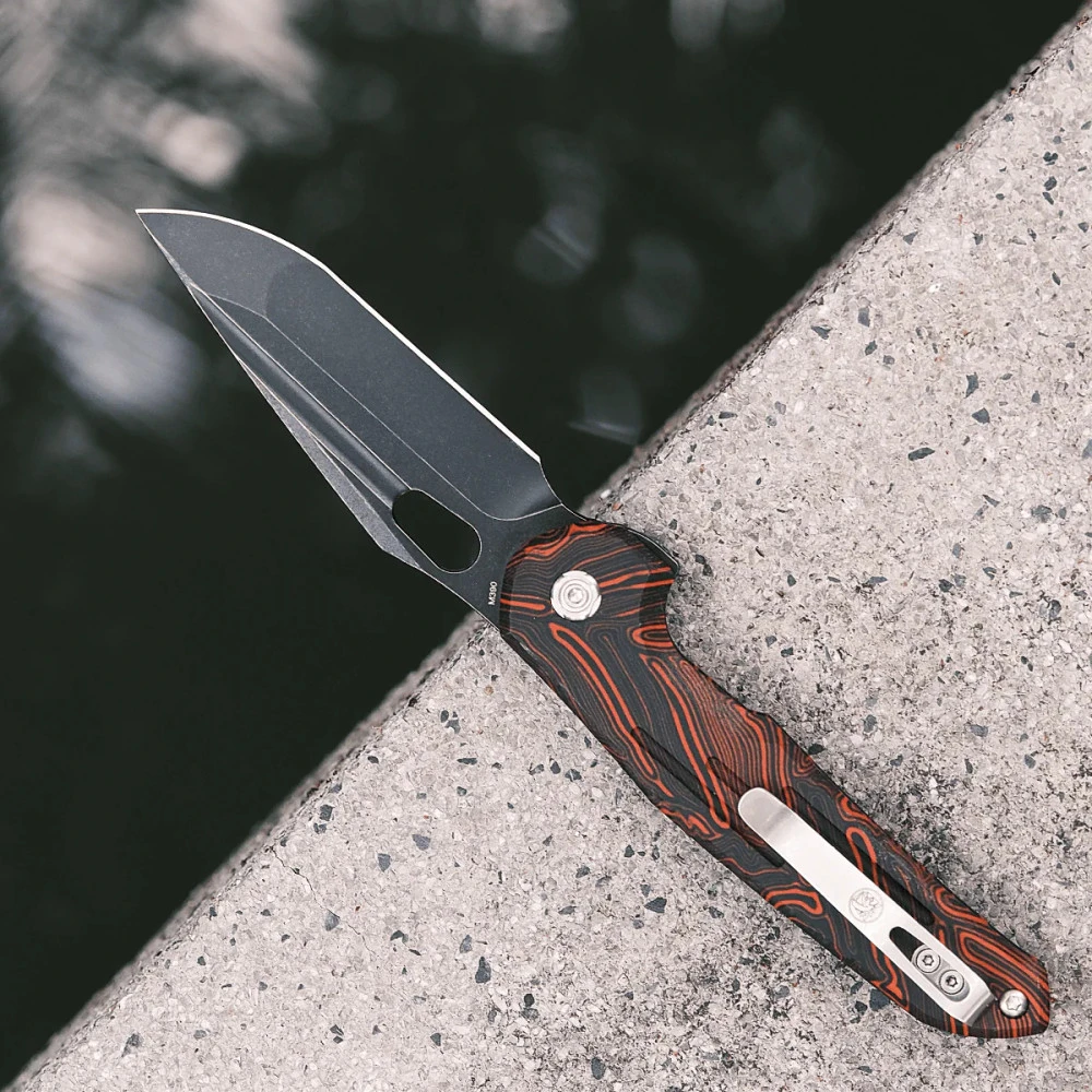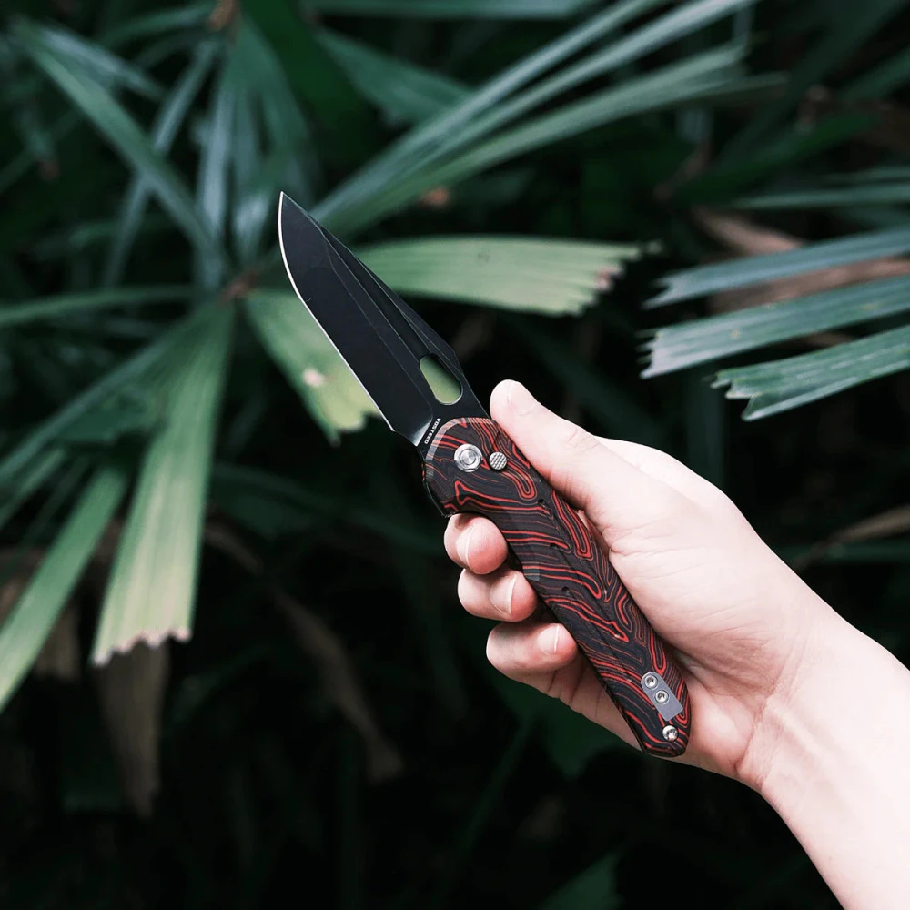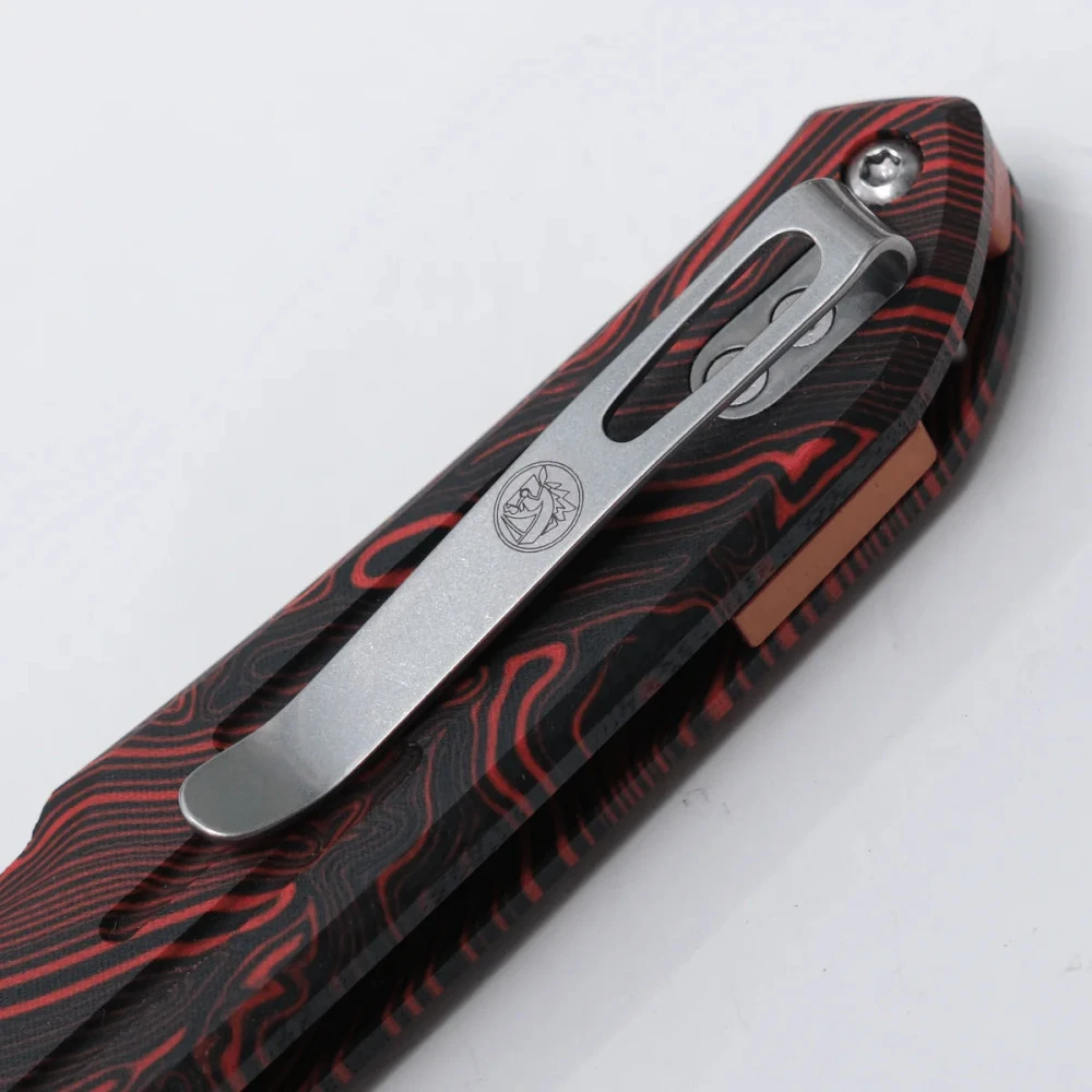 Vosteed Thunderbird – 3.25″ Black M390 Blade, Red Topo G10 Handle, Trek Lock – A0307