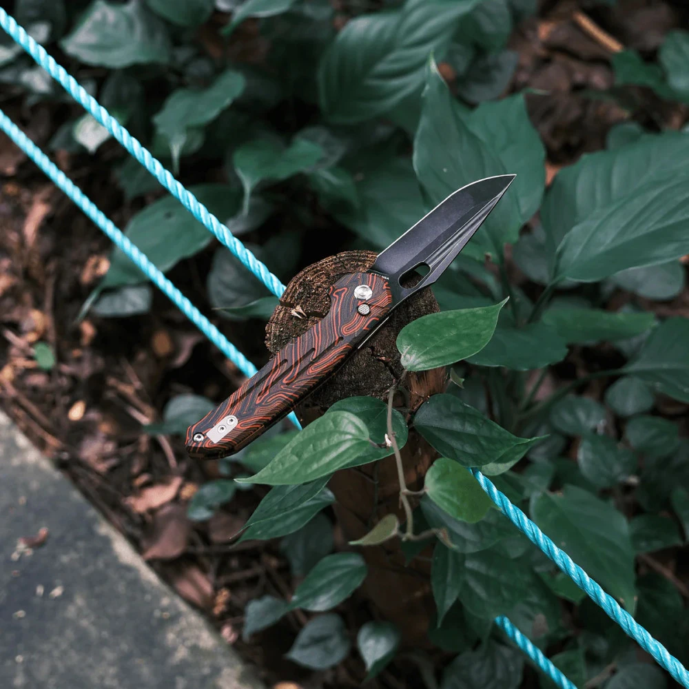 The M390 blade steel ensures an excellent balance of performance, toughness, and edge retention, and the shallow compound hollow grind ensures slicing performance and edge stability. The traditional Tantō has superior piercing performance, the tip is further reinforced by a harpoon structure, and the straight fuller offers a sleek, yet sophisticated appearance. The Trek Lock perfectly combines multi-deployment options (i.e. thumb-hole, thumb-stud, front flipper, normal flipper) with a reliable & intuitive locking mechanism, which can reduce unintended unlock accidents.