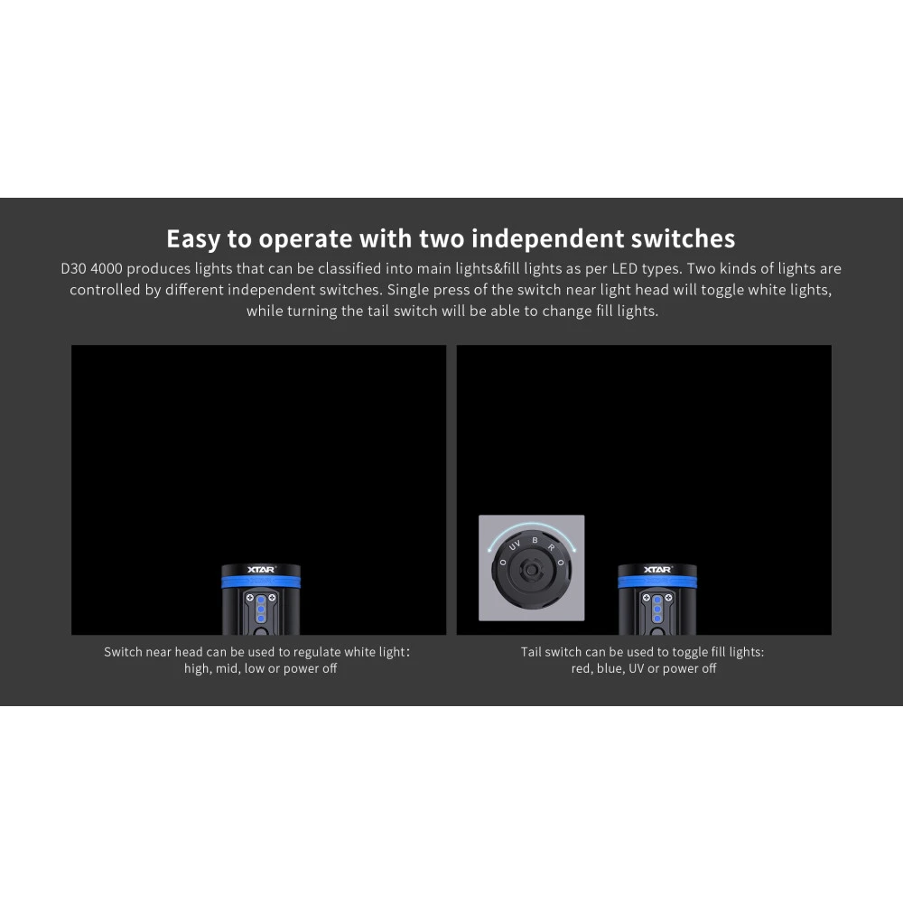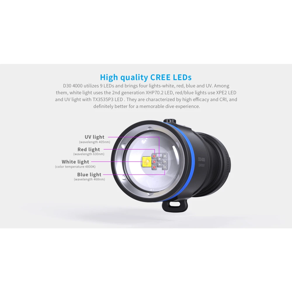 XTAR D30 4000 Dive Torch Kit – Multi-Coloured LED, 4000 Lumens