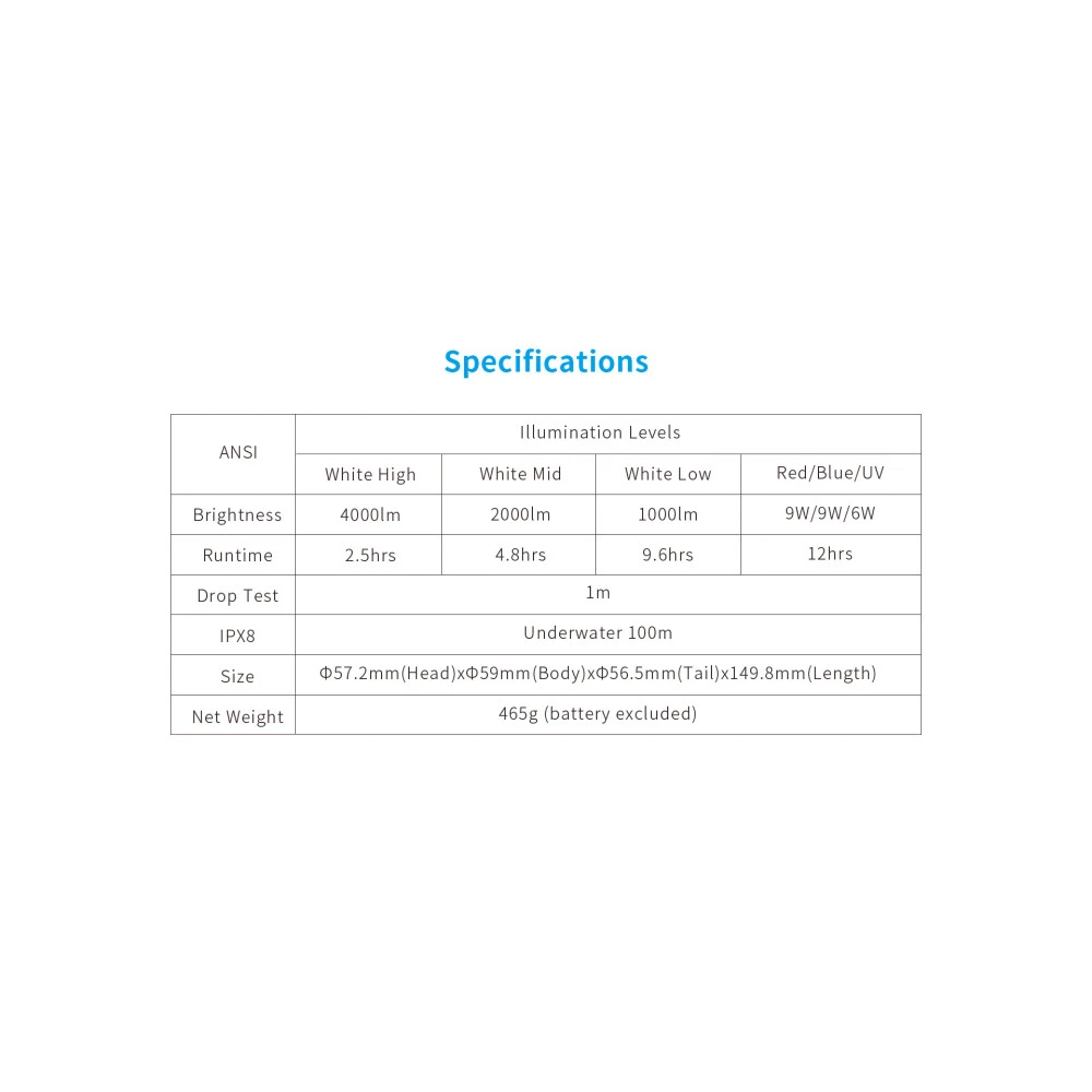 • 2.5 hours runtime for 4000 lumens.