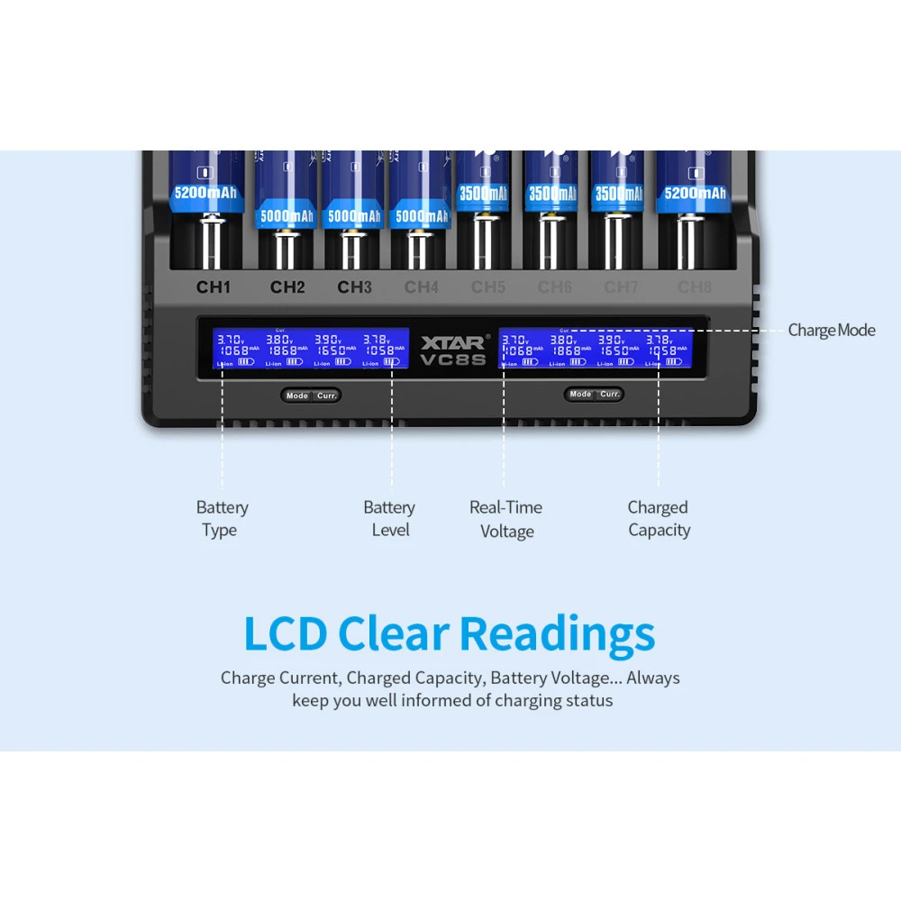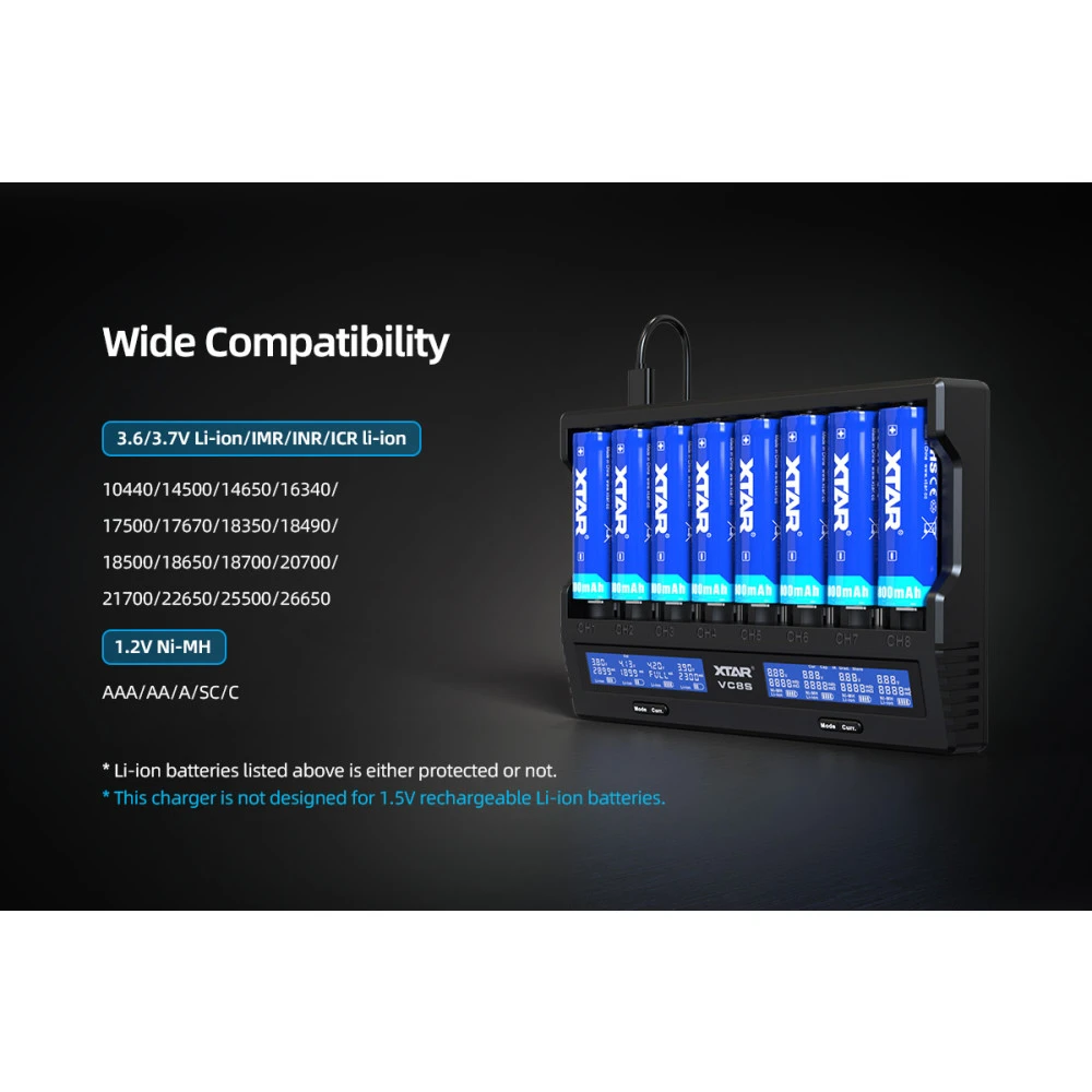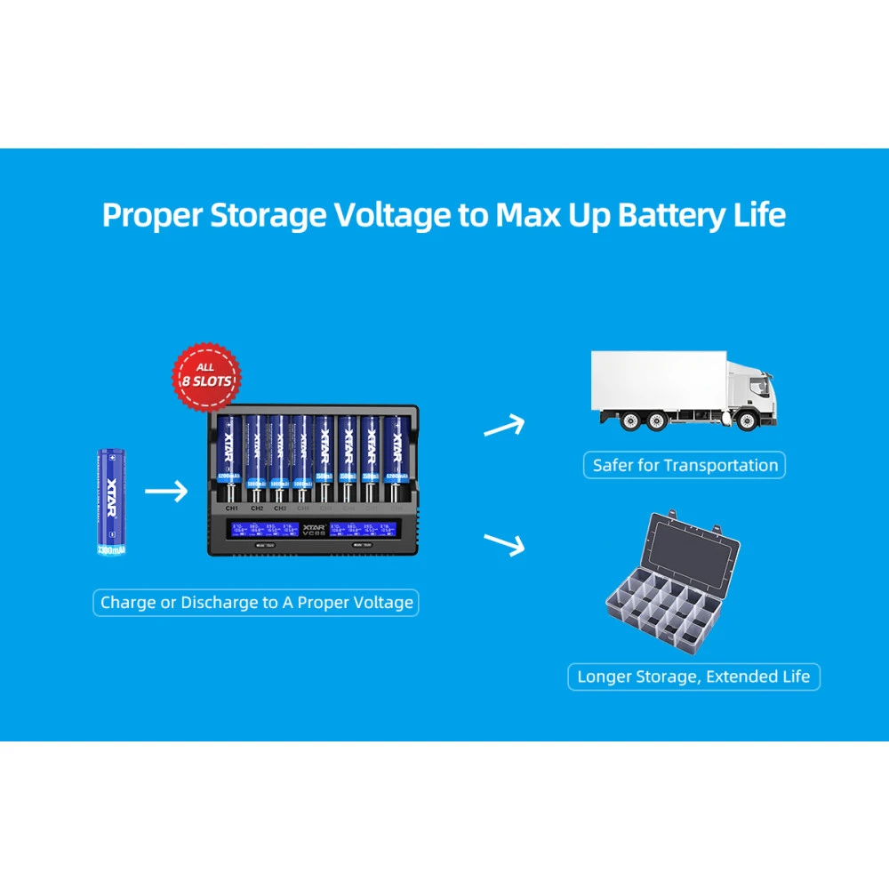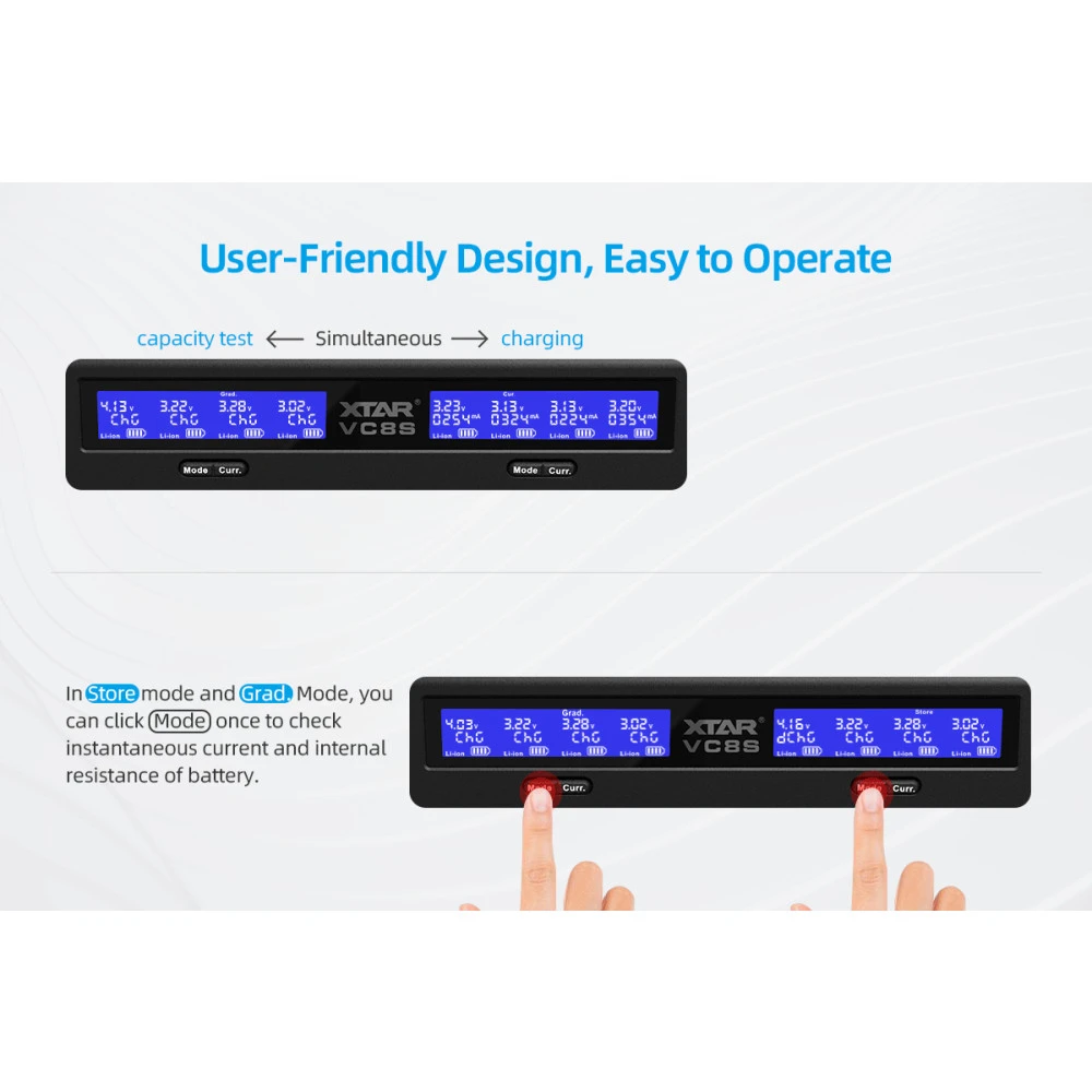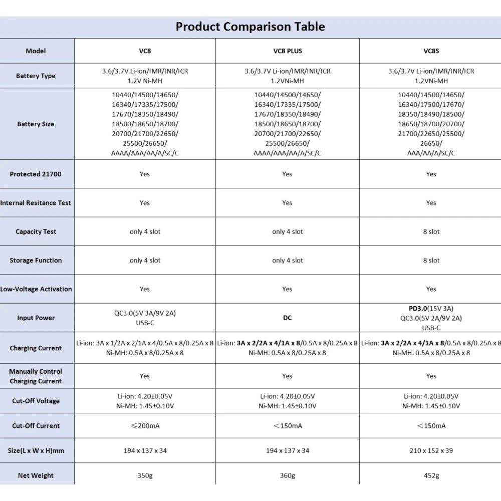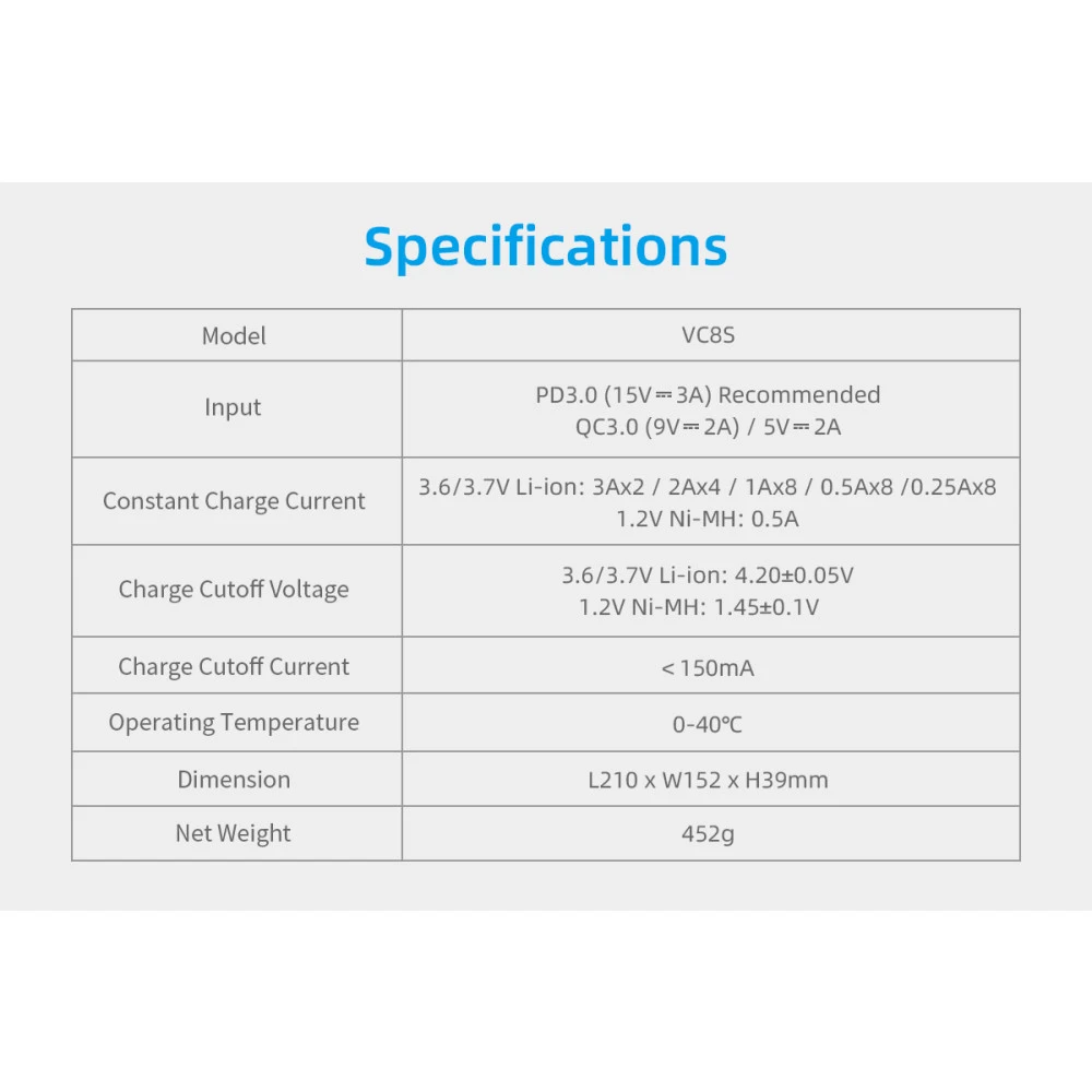 - Li-ion: 3A x2 / 2A x4 / 1A x8 / 0.5A x8 / 0.25A x8