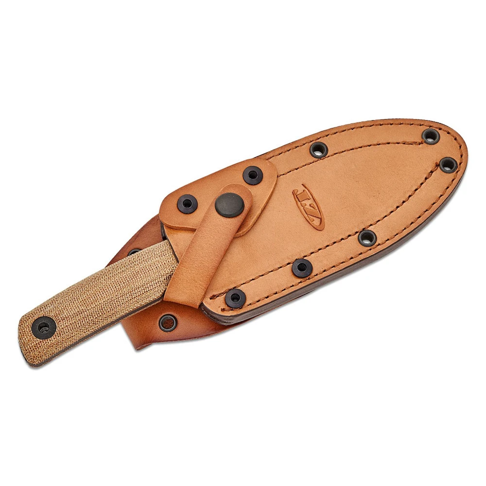 Zero Tolerance 0004 – Fixed Blade Knife 4.2″ Dark Bronze Cerakote CPM-CruWear Blade, Natural Canvas Micarta Handles, Adjustable Leather Belt Pouch
