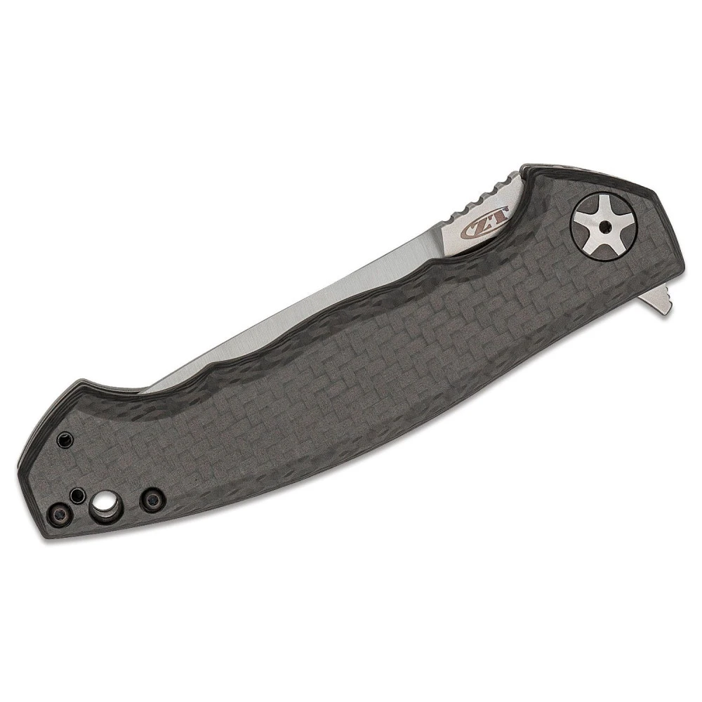 The original Zero Tolerance 0454 was an award-winning collaboration between ZT and custom knife designer Dmitry Sinkevich. But it was also a VERY Limited Edition knife. To make this amazing knife more readily available, ZT created a version based on the original’s streamlined form and high-performance function. The 0452CF is the same size as the original 0454, but with a carbon fibre front scale and S35VN dual-finished blade. S35VN sharpens to a razor edge, holds it, and can be resharpened easily. The 0452CF opens as smooth as silk, with the KVT ball-bearing opening system and built-in flipper. A titanium frame lock with hardened steel lockbar insert ensures solid lock up. As a final touch of class, the 0452CF features handsome 5-spoke pivot hardware.